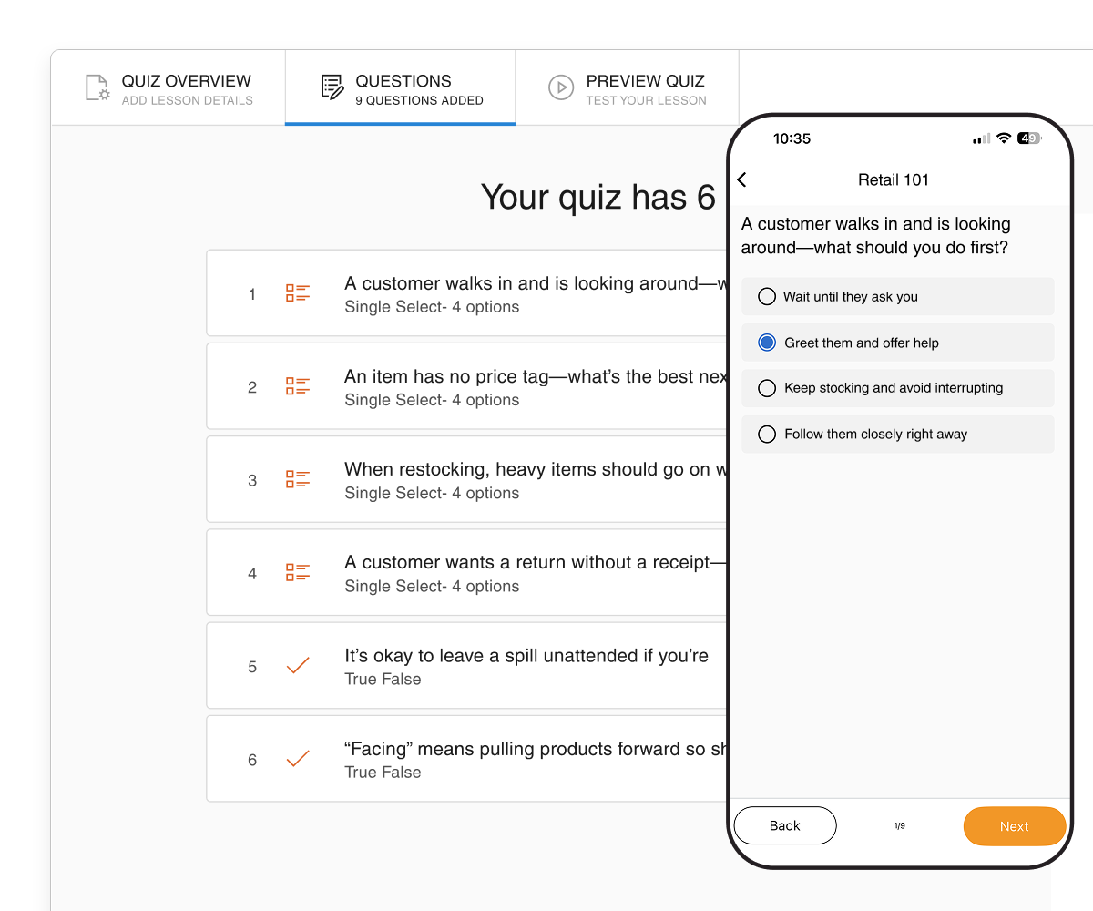 Easy Anytime Access: Let staff complete quizzes on their phones or a shared device between shifts, so training fits into a busy store schedule.