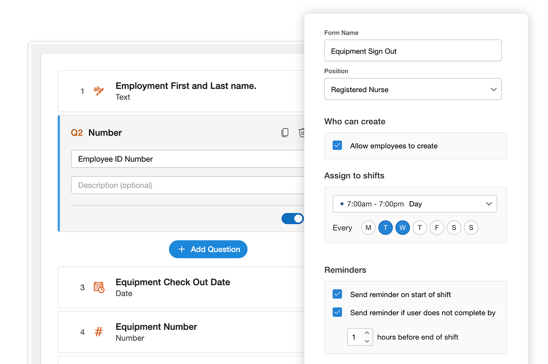 Assign and Manage: Assign forms to shifts, employees or give employees create access.