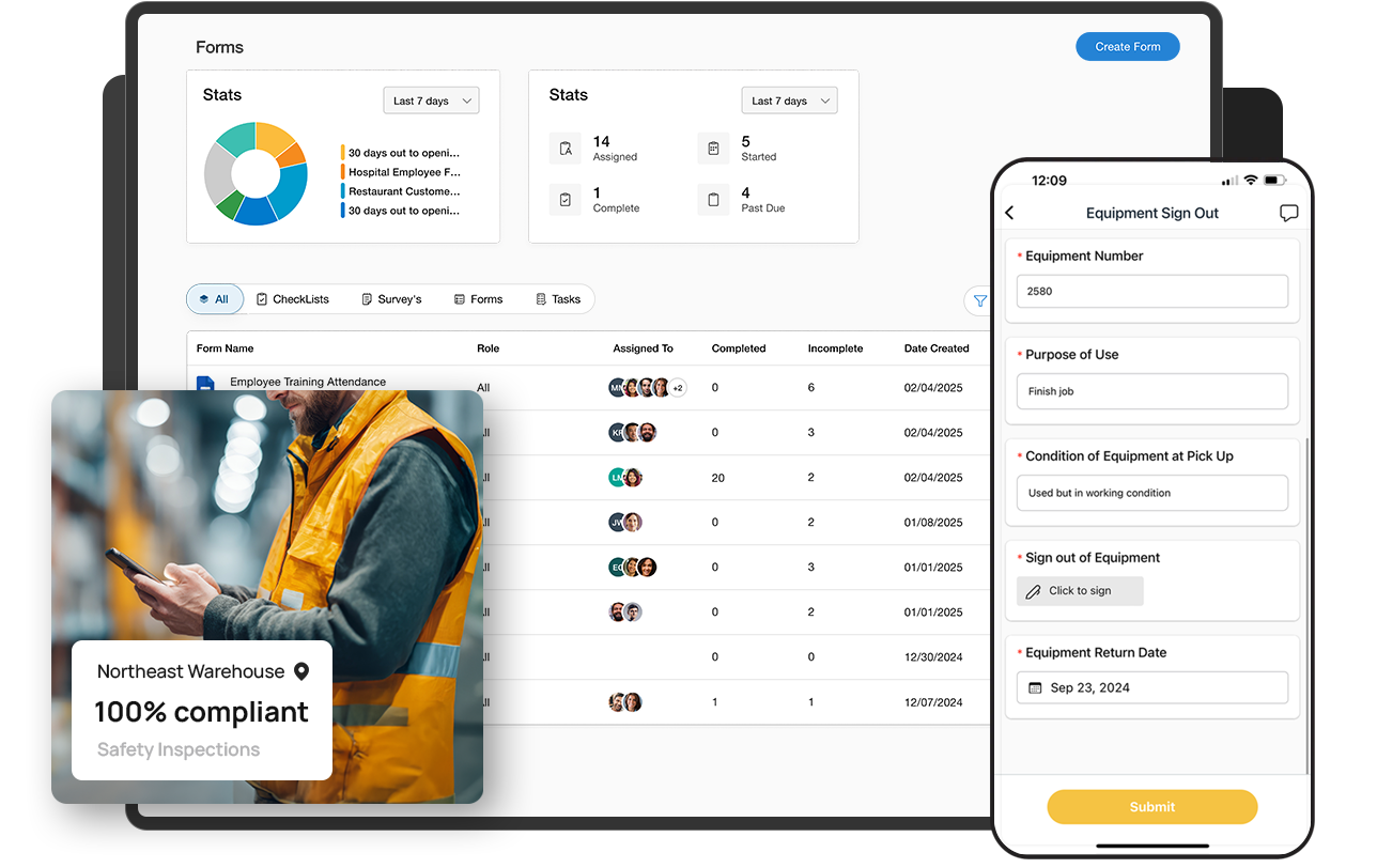 Live Submission Tracking: Monitor form completions in real-time, ensuring all critical safety and compliance tasks are finished on schedule.