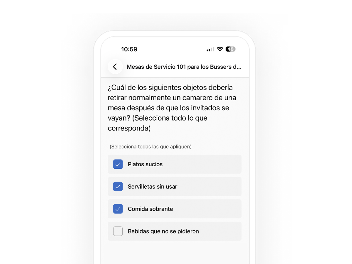 Automatic Quiz Translation: When employees use the app in Spanish, existing quizzes and training content appear in Spanish automatically.